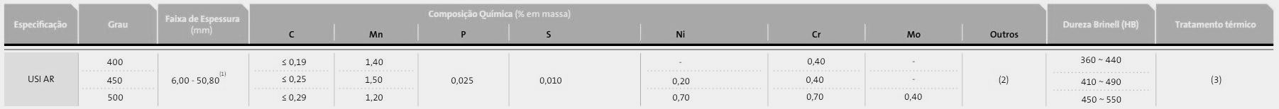 São aços com adições de elementos de liga, temperados, tendo como principal característica a alta dureza, sendo destinados a serviços de alto desgaste mecânico. Nessa classe se encontram materiais que apresentam dureza Brinell na faixa de 360 a 550. Esses aços apresentam, ainda, boa soldabilidade e, em casos especiais, sob consulta, podem ser fornecidos com garantia de impacto Charpy a -20°C ou inferior. São aplicados em tratores, retroescavadeiras, caçambas de caminhões fora de estrada, tremonhas, revestimentos de calhas, transportadores de minérios, peças de altos-fornos e ventiladores industriais.