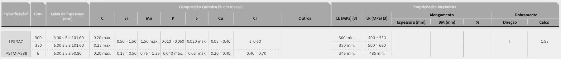 São aços patináveis de excelente resistência à corrosão atmosférica, tendo sua aplicação muito diversificada, tais como em edifícios, pontes, implementos agrícolas, mineração, vagões, entre outras. Trata-se de aços-carbono manganês micro ligados, com boas características de soldabilidade, mesmo sem pintura, e que também oferecem excelente aderência na aplicação da pintura.